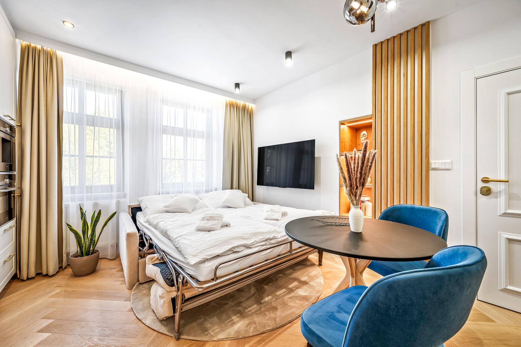 Apartmán Fantasy je ideálny pre podnikateľov a cestujúcich za prácou, ktorí hľadajú útulné a funkčné ubytovanie s dostatkom súkromia na prácu a oddych. Vďaka praktickému usporiadaniu a útulnej atmosfére je rovnako vhodný aj pre menšie rodiny alebo páry, ktoré si chcú užiť pohodlie moderného priestoru s možnosťou plnohodnotného spania až pre 4 osoby. Balkón s výhľadom na Vysoké Tatry navyše poskytuje ideálne miesto na relax a načerpanie novej energie.