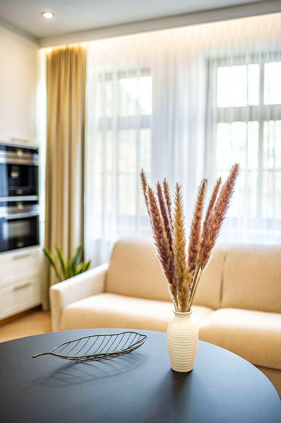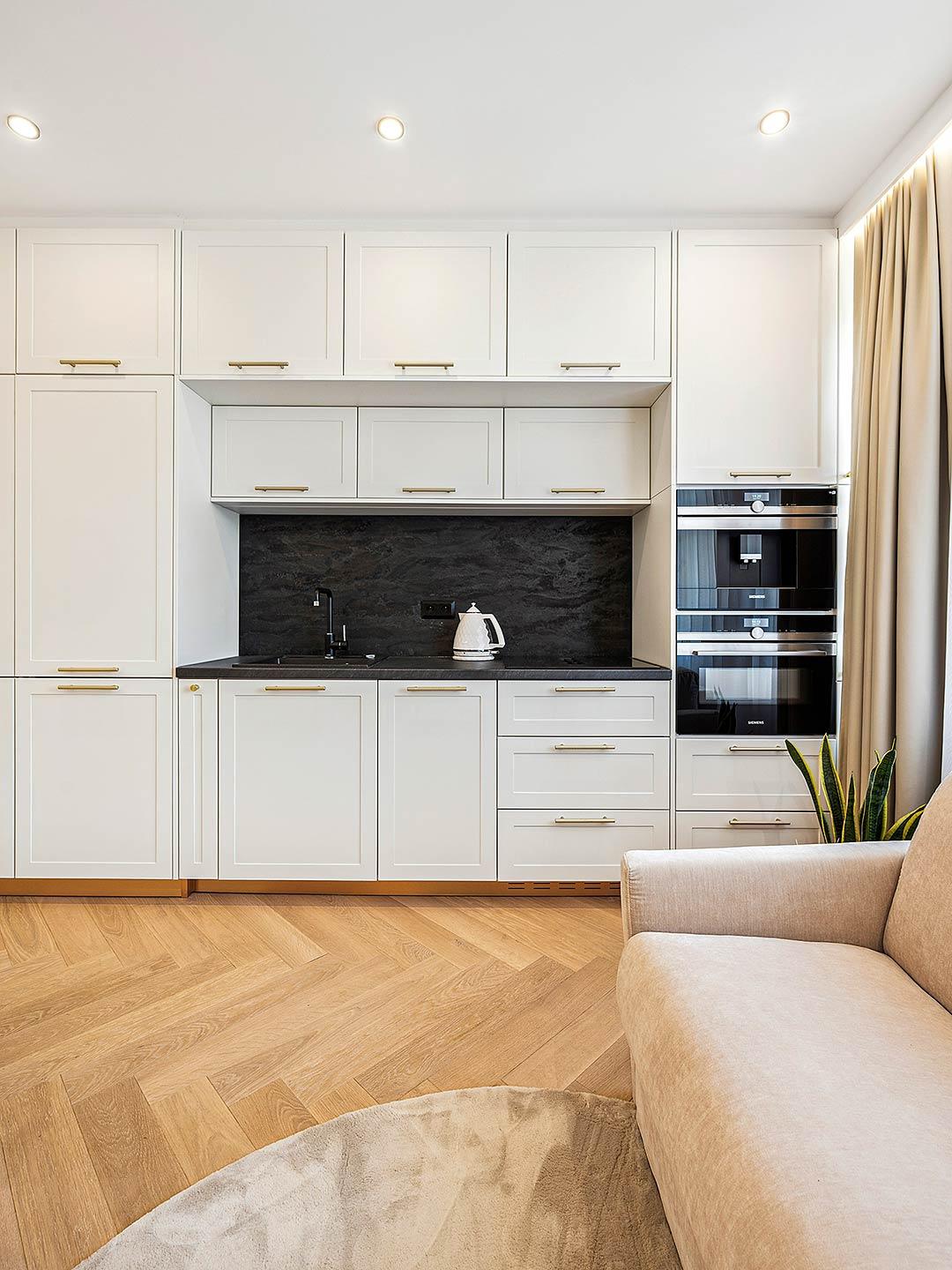 Apartmán Fantasy je vskutku okúzľujúci a zaujímavý svojou rozľahlou dizajnovou predsieňou a dlhou bielou chodbou ktorá vedie k ostatným miestnostiam a k balkónu, kde si môžete vychutnať chvíľku pokoja pri rannej káve a rozjímanie pri výhľade na Vysoké Tatry. Za záhadnou bielou chodbou sa nachádza otvorený priestor obývačky spojenej s modernou kuchyňou a privíta vás svojou útulnou atmosférou a premysleným dizajnom. V tomto apartmáne sa spája kreativita s netradičným dizajnom – spálňa je súčasťou obývacej zóny a kuchyne. Netradičná, polootvorená spálňa ponúka vzdušný spánok na pohodlnej manželskej posteli. V obývacej časti sa nachádza rozkladacia sedačka sofabed s vyklápacím matracom, ktorá zabezpečí plnohodnotné spanie pre ďalšie dve osoby, konferenčný stolík a TV. Kuchyňa je plne vybavená kuchynským riadom, chladničkou, umývačkou riadu, kávovarom, kombinovanou rúrou s mikrovlnným ohrevom, kanvicou, jedálenským stolom s 2 stoličkami, čistiacimi a umývacími prostriedkami. V kúpeľni sa nachádza toaleta, sprchovací kút, umývadlo, práčka so sušičkou, fén, naparovač odevov, kúpeľňová kozmetika, uteráky. V predsieni sa nachádza množstvo úložného priestoru vo forme skríň a poličiek.