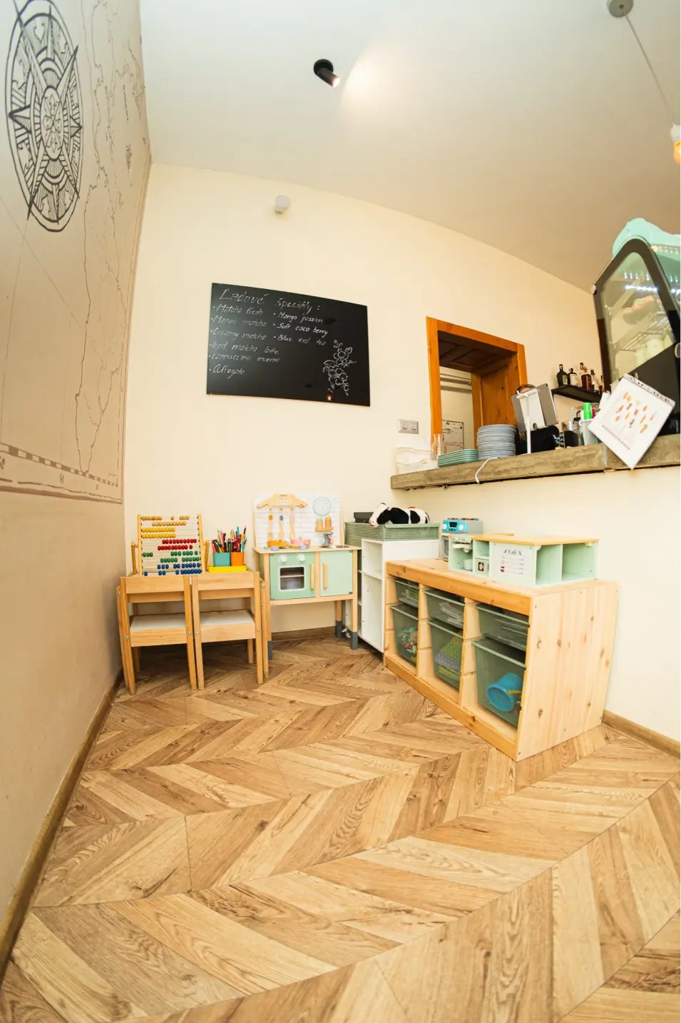 Súčasťou nášho priestoru je aj útulný detský kútik, ktorý sa nachádza priamo v Beňovský Bistro & Market na prízemí. Bol vytvorený s cieľom dopriať rodinám maximálny komfort – zatiaľ čo si rodičia vychutnávajú kávu či raňajky, deti sa môžu bezpečne zahrať v príjemnom a podnetnom prostredí.